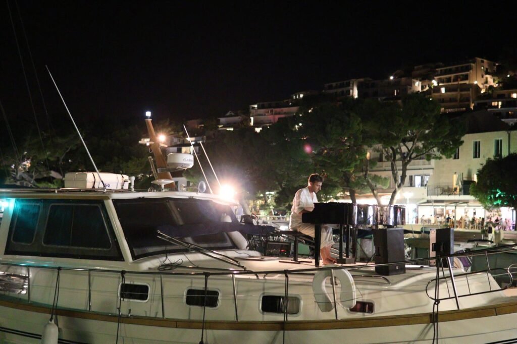 Last Saturday, August 16, a unique classical music concert was held in Brela, Makarska Riviera. Pianist Severin Filipović teamed up with Alex Birkenstock on whose yacht in the harbor he held a free concert for all visitors and residents. The repertoire included Debussy, Scriabin, Albeniz, Respighi, and Filipović delighted the visitors with the famous composition by Hans Zimmer for the film Interstellar.