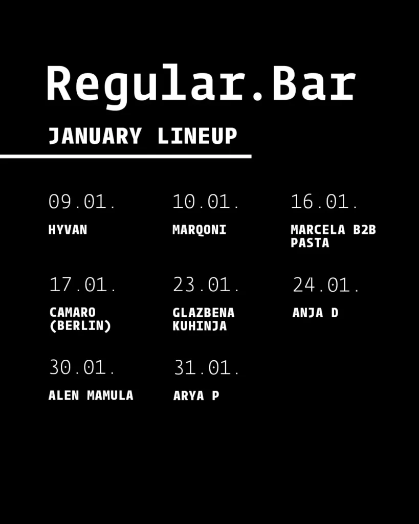 Saturday, as usual, offers a richer selection. Insolate is launching a new season of Hush! in a refreshed format, the young and talented Anja D will get the crowd moving at Regular, the award-winning techno band ABOP is preparing a concert in Labin with interesting guest performers, while just a few kilometers away in Rijeka, local producers and DJs Jan Kinčl and Ivan Komlinović will be performing. Svarog Bar in Zadar will also be filled by producer and DJ Ogi. Alongside these high-quality local acts, one hardcore guest appearance from Barcelona is coming to Zagreb’s DEPO, where Sara Krin will perform.