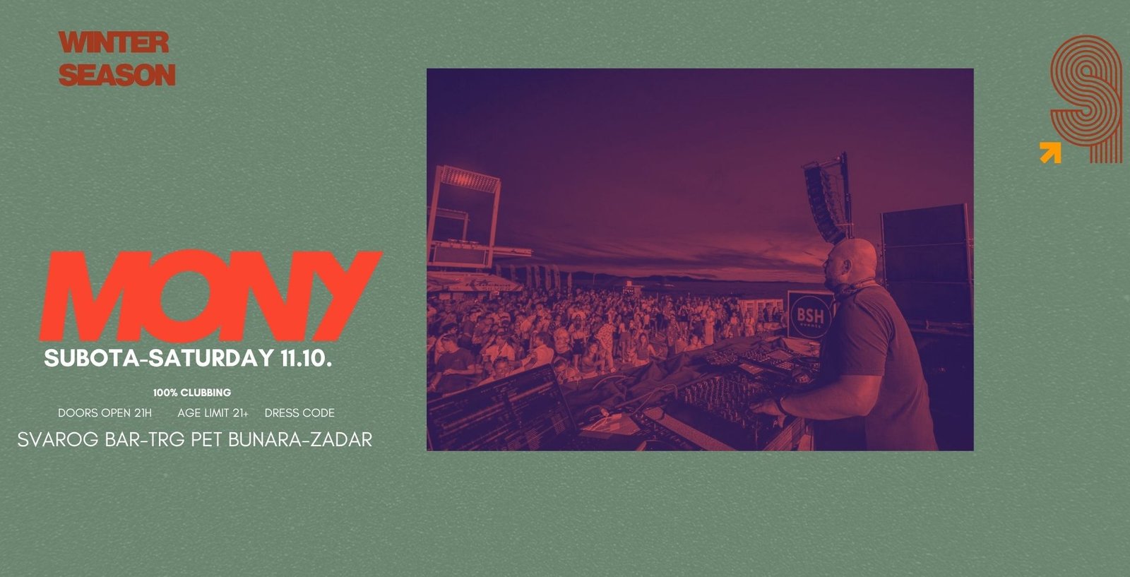MONY returns to one of Zadar’s most dance-loving floors. With a deep feel for house, techno, and disco, he knows how to build a groove that connects with the crowd. Over the years, he’s played across Croatia’s top clubs and festivals, sharing the stage with artists like Joris Voorn, Adam Beyer, Mind Against, and Artbat.